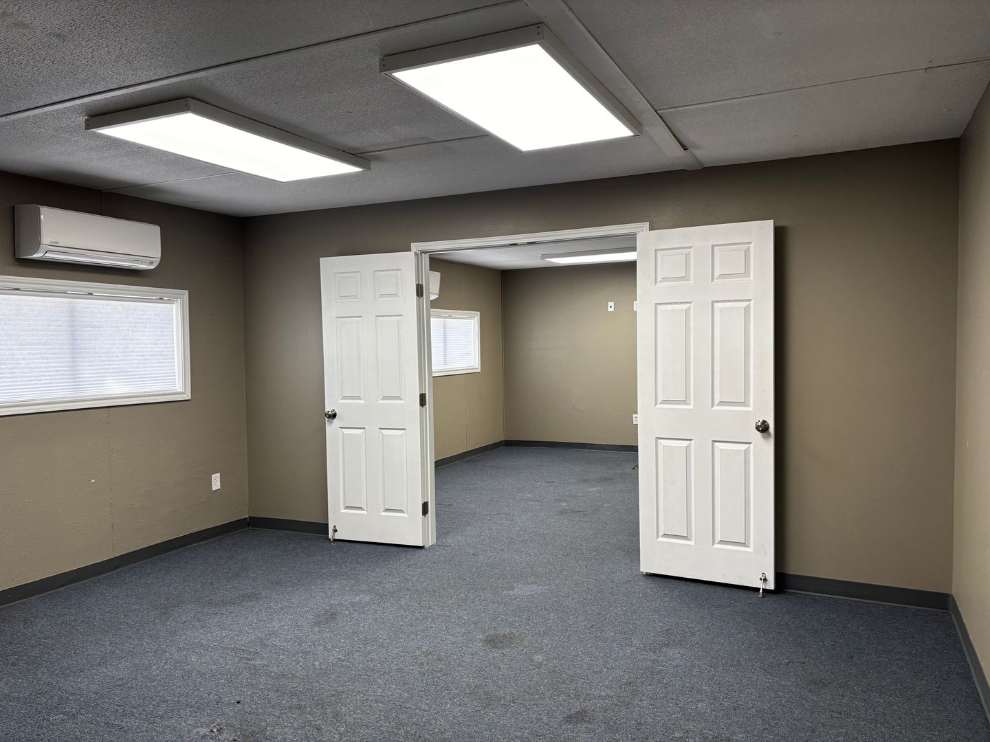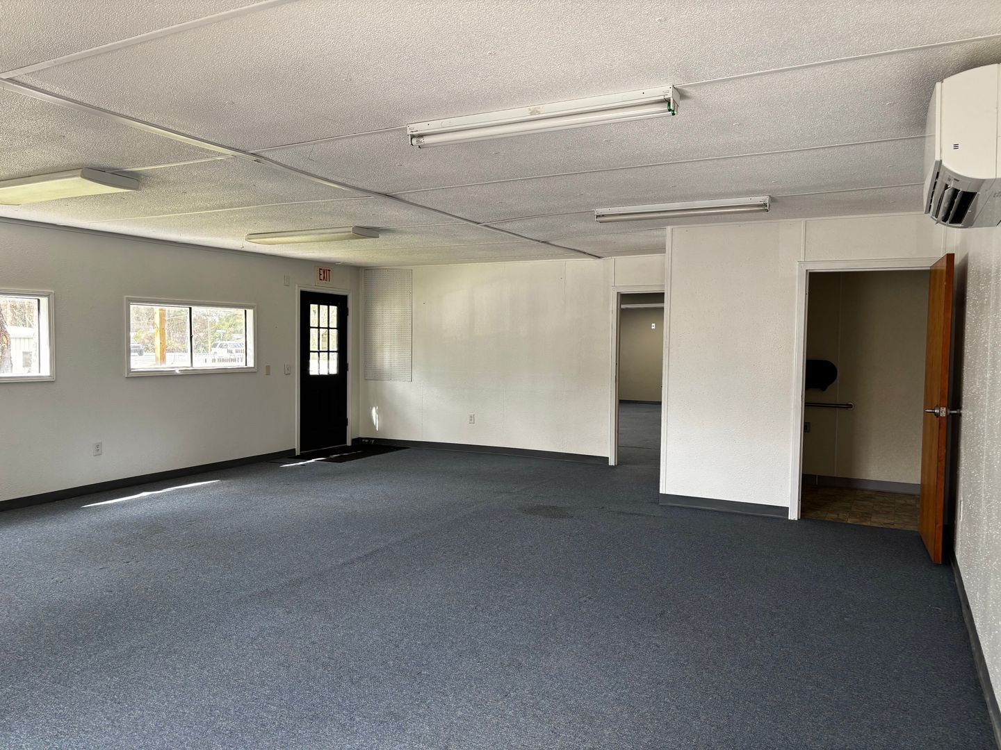The building features several exterior entrances, providing convenient access for staff and clients, improved operational flow, and the opportunity for multi-tenant use or departmental separation. Two bathrooms add to the overall functionality and convenience of the space.
