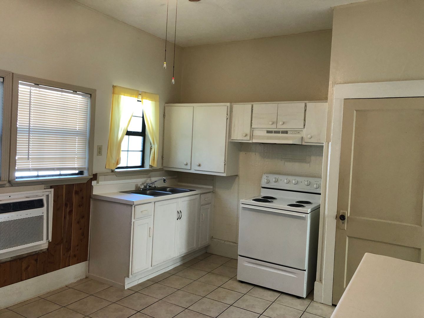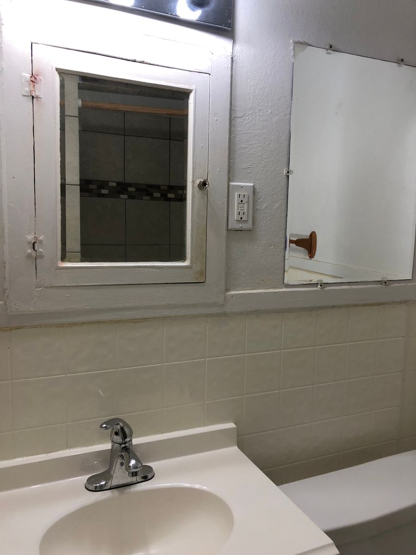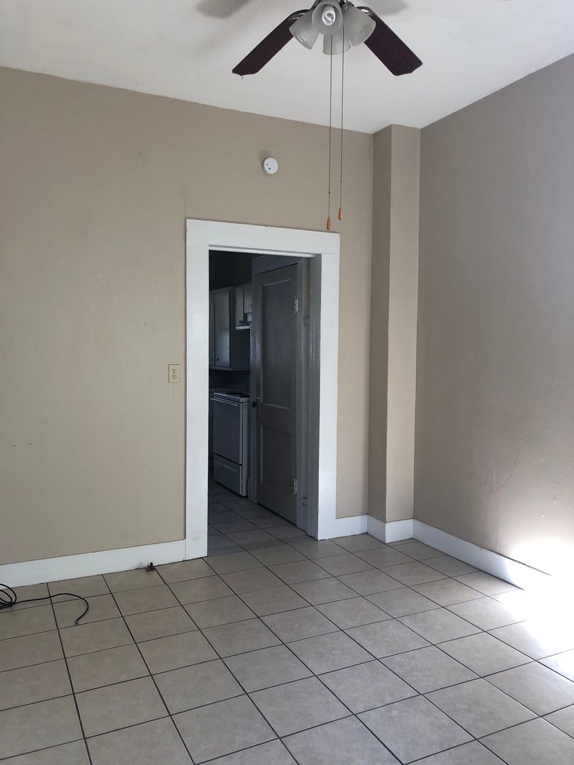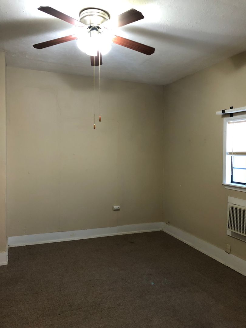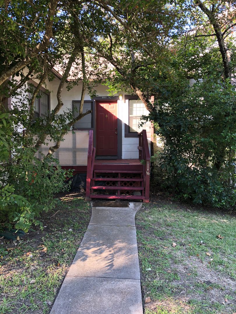 This classic house turned into 3 units under one roof has a spacious apartment in the middle with a shared back porch and private front porch. Lots of shade trees keeps the outside space cooler under the Texas sun. This unit has a living room with closet, bedroom, and spacious kitchen with lots of cabinets and large pantry.