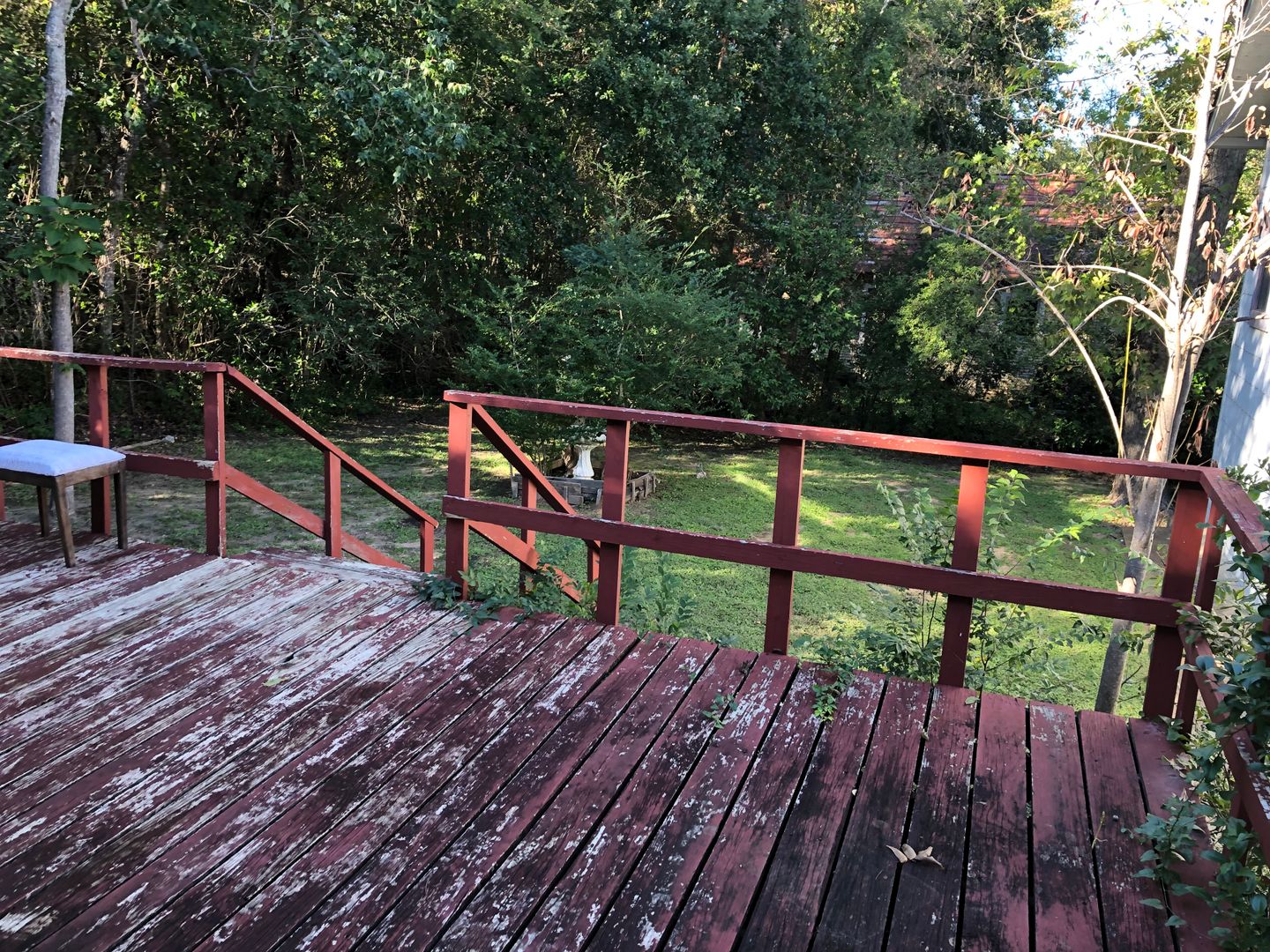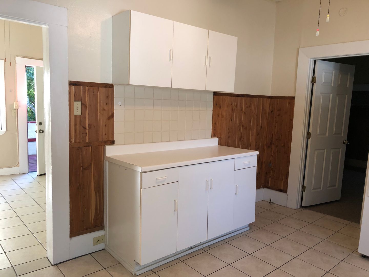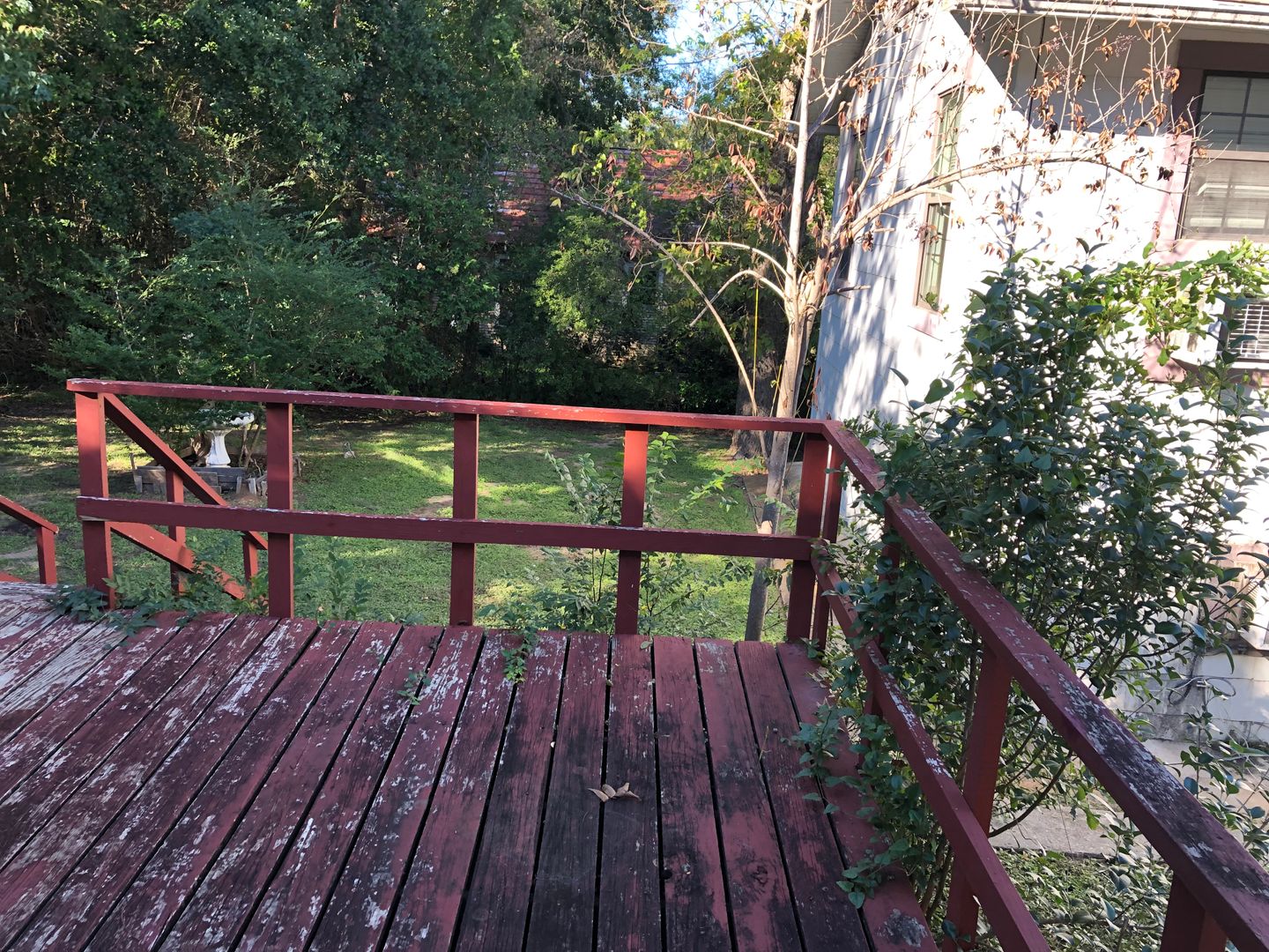 This classic house turned into 3 units under one roof has a spacious apartment in the middle with a shared back porch and private front porch. Lots of shade trees keeps the outside space cooler under the Texas sun. This unit has a living room with closet, bedroom, and spacious kitchen with lots of cabinets and large pantry.